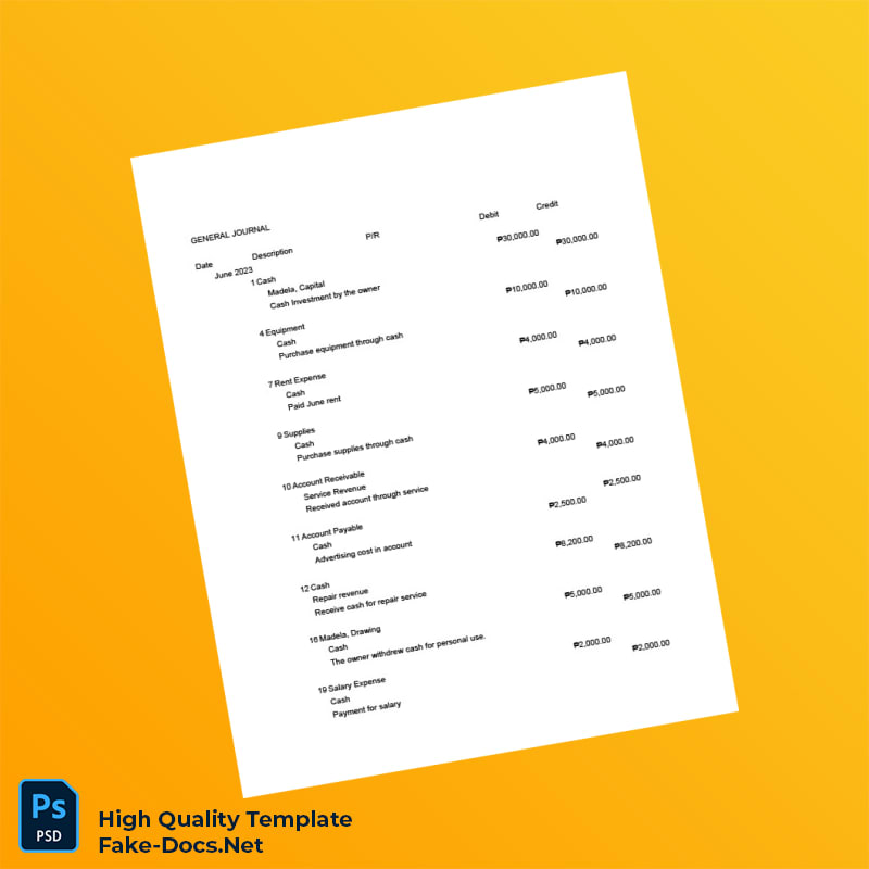 Philippines J Madela Repair Shop Editable General Journal Template in Word and PDF formats 3 page