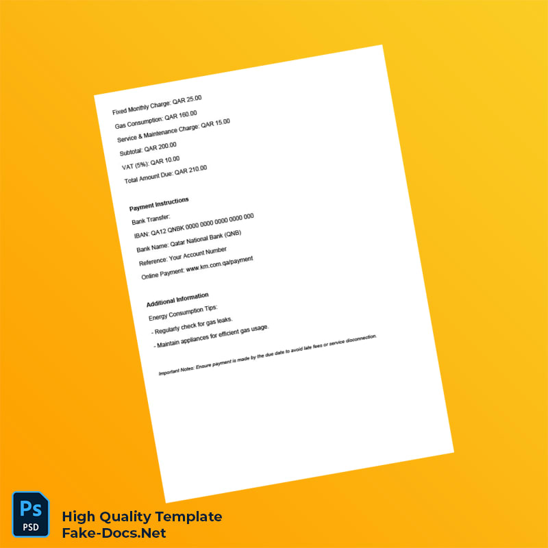 Qatar Qatar General Electricity Water Corporation Kahramaa Editable Gas Utility Bill Template in Word and PDF formats 2 page