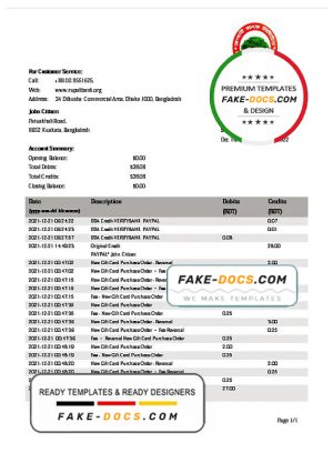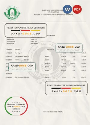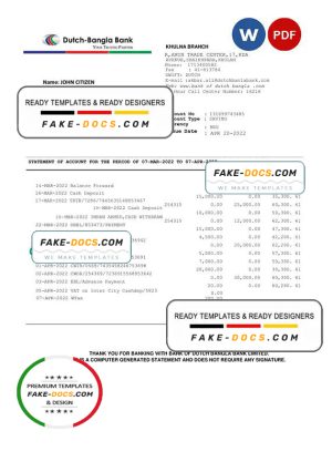 Bangladesh Dutch-Bangla bank statement Word and PDF template