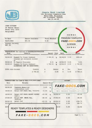 Bangladesh Janata Bank statement easy to fill template in Word and PDF format