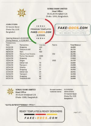 Bangladesh Sonali bank statement easy to fill template in Excel and PDF format