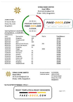Bangladesh Sonali Bank proof of address statement template in Word and PDF format (.doc and .pdf)