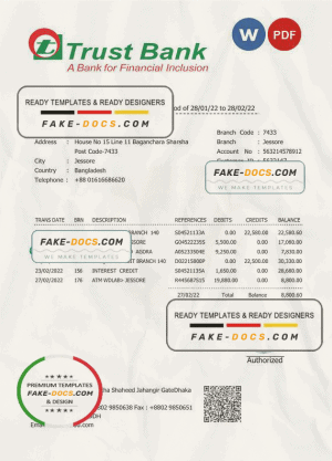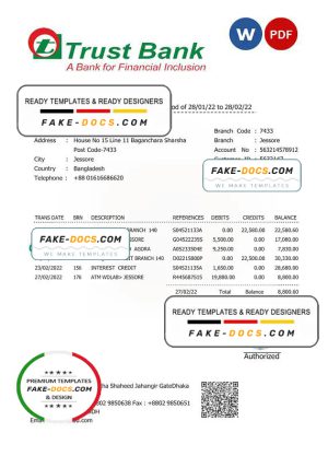 Bangladesh Trust bank statement Word and PDF template