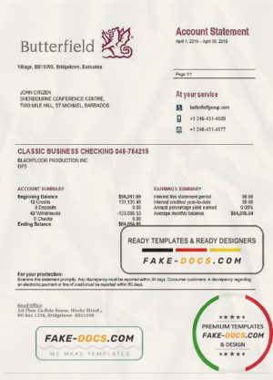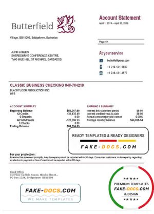 Barbados Butterfield proof of address bank statement template in Word and PDF format