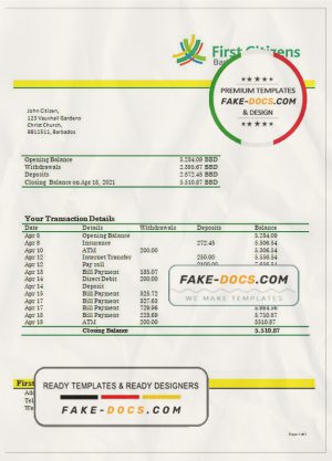 Barbados first citizens bank statement template in Word and PDF format