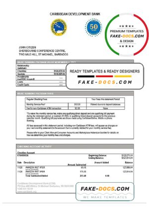 Barbados Caribbean Development Bank statement template in Word and PDF format