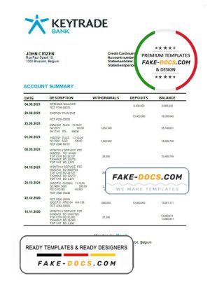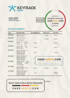 Belgium Keytrade bank statement template in Word and PDF format