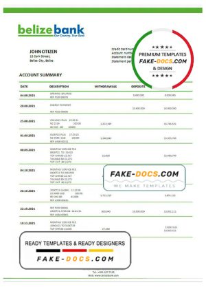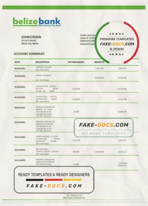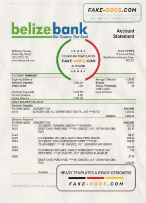 Belize bank statement template in Word and PDF format