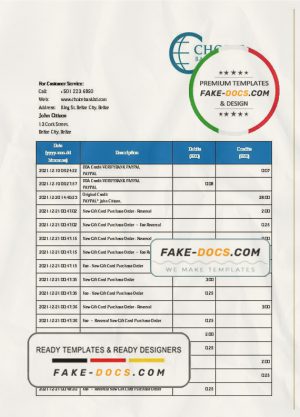 Belize Choice Bank statement template in Excel and PDF format