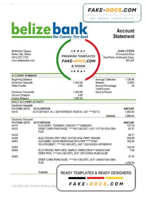 Belize Belizebank proof of address bank statement template in Word and PDF format