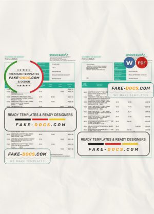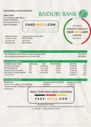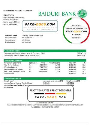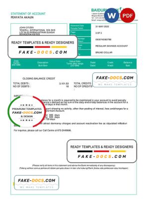 Brunei Baiduri bank statement, Word and PDF template, 3 pages