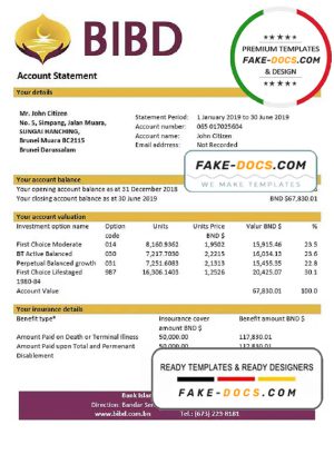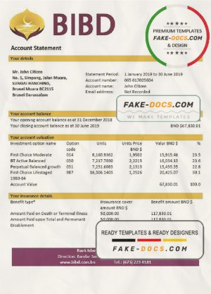 Brunei Bank Islam Brunei Darussalam bank statement template in Word and PDF format