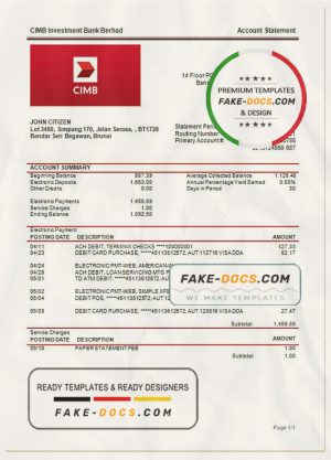 Brunei CIMB proof of addres statement template in Word and PDF format