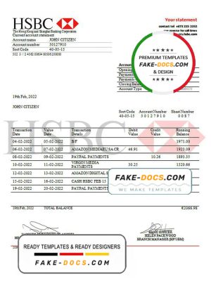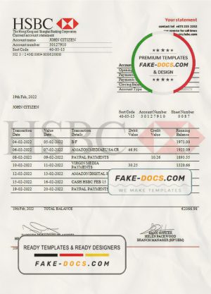 Brunei HSBC proof of addres statement template in Word and PDF format