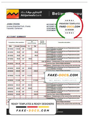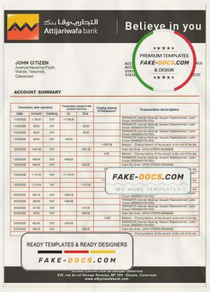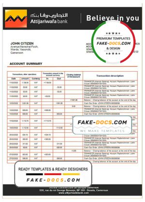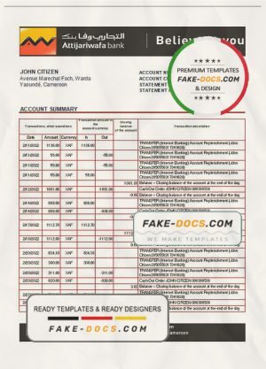 Cameroon SCB bank statement template in Word and PDF format