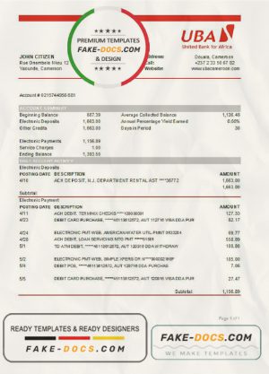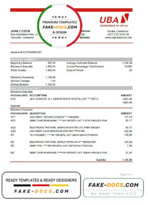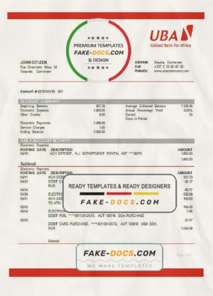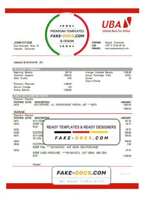 Cameroon UBA bank statement template in Word and PDF format
