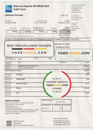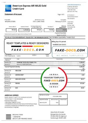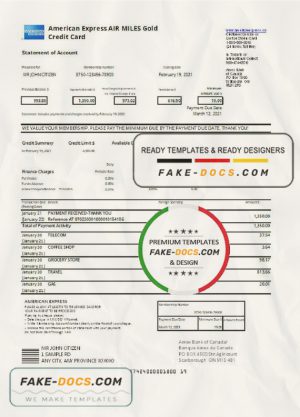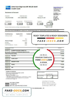 Canada American Express Air Miles Credit Card account statement easy to fill template in Word and PDF format