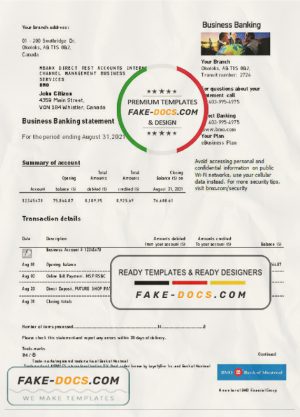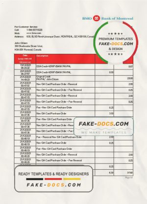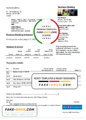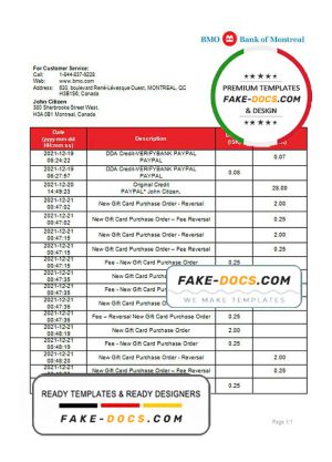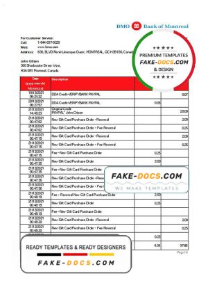Canada Bank of Montreal bank statement template in Word and PDF format (.doc and .pdf)