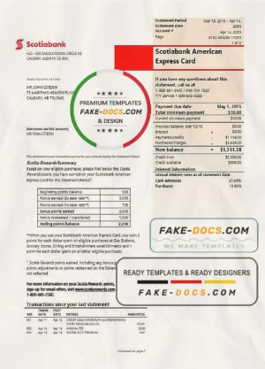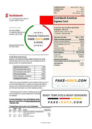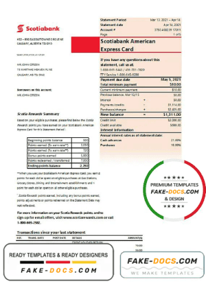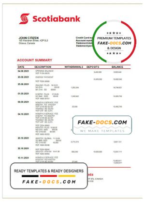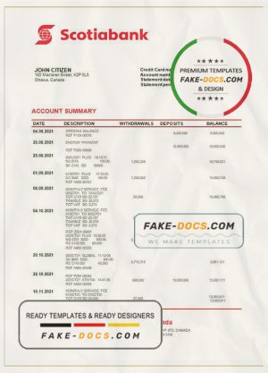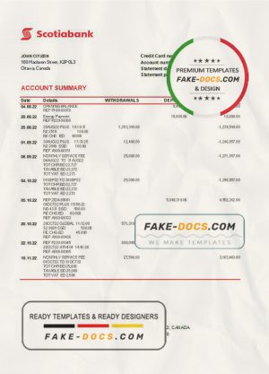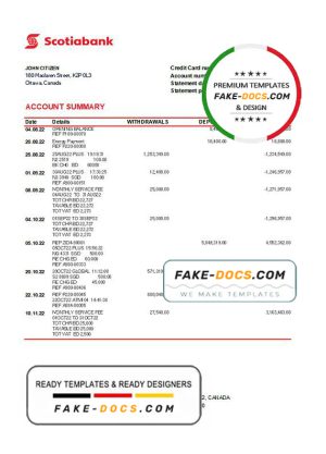 Canada Scotiabank proof of address statement template in Word and PDF format, (.doc and .pdf)