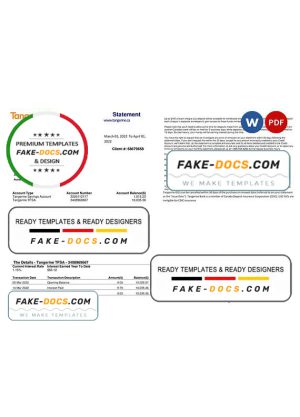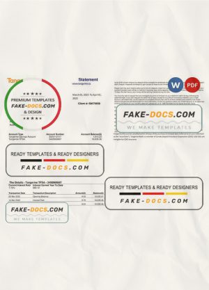 Canada Tangerine bank statement Word and PDF template, 2 pages