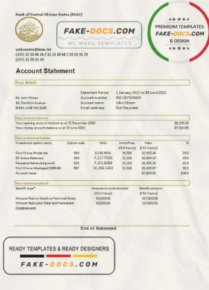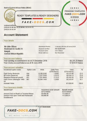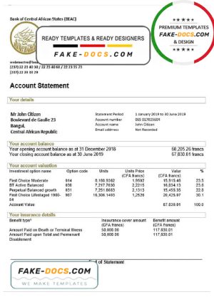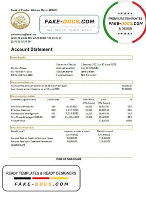 Central African Republic Bank of Central African States (BEAC) bank statement template, Word and PDF format (.doc and .pdf)