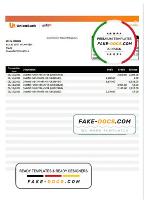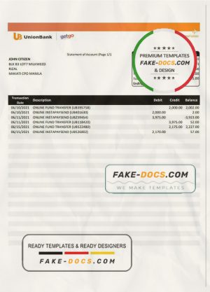 Philippines UCPB bank statement of account template in Excel and PDF format