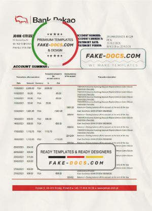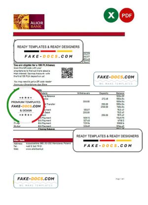 Poland Bank Pekao S.A. bank statement easy to fill template in Excel and PDF format