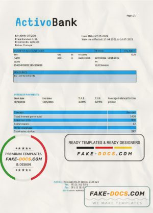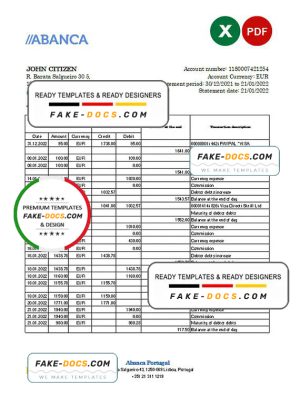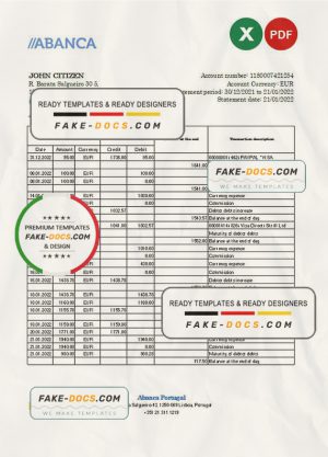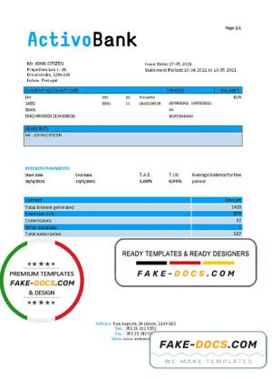 Portugal Activobank S.A. bank statement template in Excel and PDF format, .xls and .pdf format