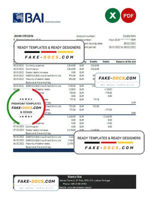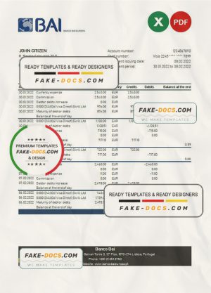 Portugal Banco BAI Europa bank statement Excel and PDF template