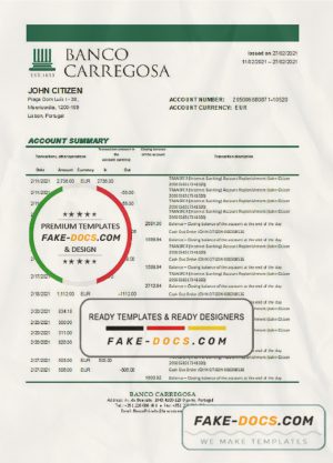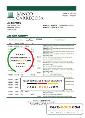 Portugal Banco Carregosa bank statement template in Excel and PDF format, .xls and .pdf format