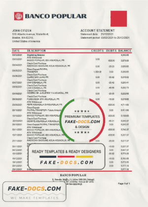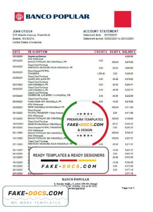 Portugal Banco Popular bank statement template in Excel and PDF format, .xls and .pdf format