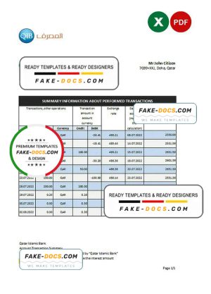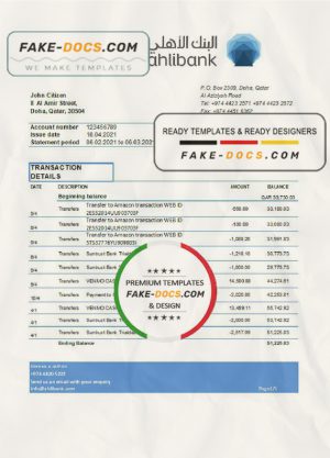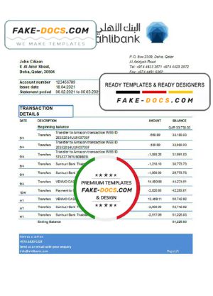 Qatar Ahlibank statement easy to fill template in Excel and PDF format
