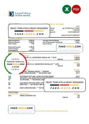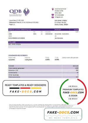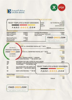 Qatar Development Bank statement template, Excel and PDF format (.xls and .pdf)