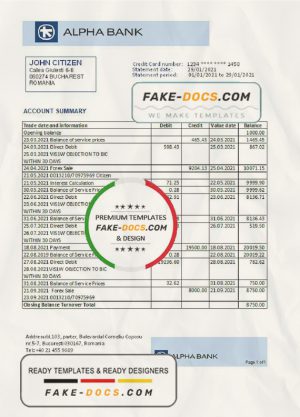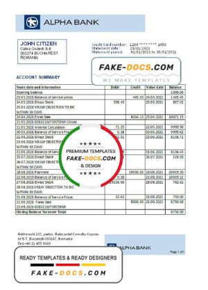 Romania Alpha Bank statement easy to fill template in Excel and PDF format