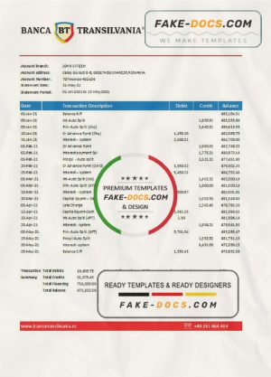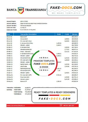 Romania Banca Transilvania bank statement easy to fill template in .xls and .pdf file format