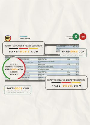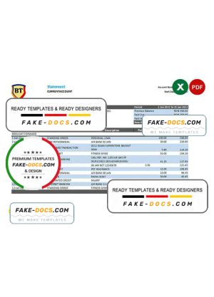 Romania Banca Transilvania bank statement, Excel and PDF template