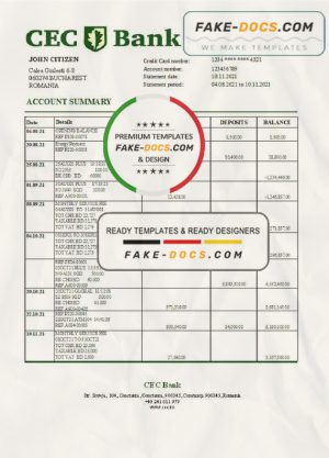 Romania CEC Bank statement easy to fill template in Excel and PDF format
