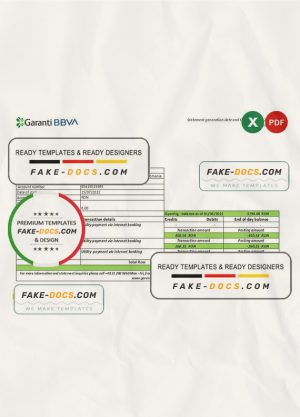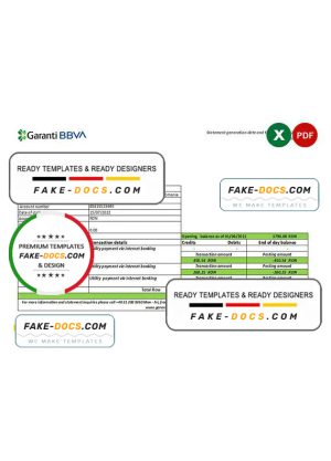 Romania Garanti BBVA bank statement, Excel and PDF template