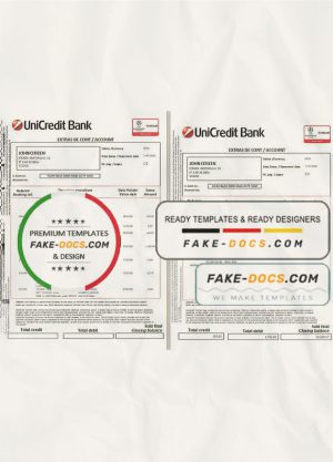 Romania UniCredit Bank statement template in Excel and PDF format (2 pages) in Romanian and English languages