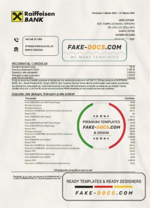 Romania Raiffeisen bank statement template in Excel and PDF format (in Romanian language)