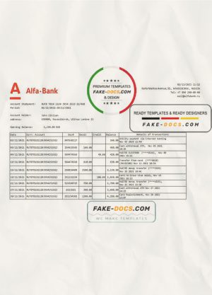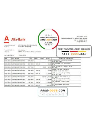 Russia Alfa bank statement easy to fill template in .xls and .pdf file format