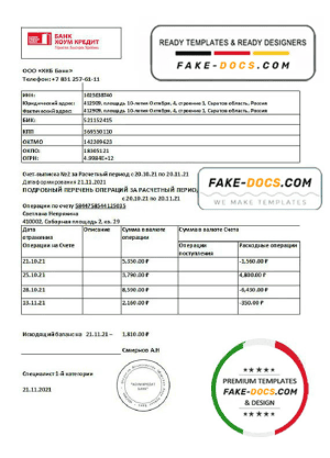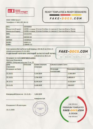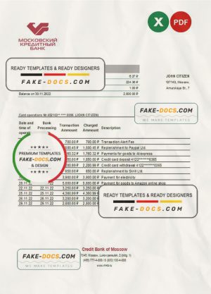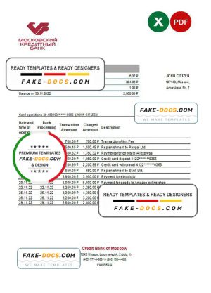 Russia Credit Bank of Moscow bank statement, Excel and PDF template