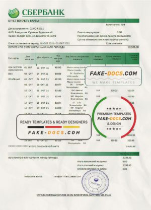 Russia Sberbank bank statement easy to fill template in Excel and PDF format