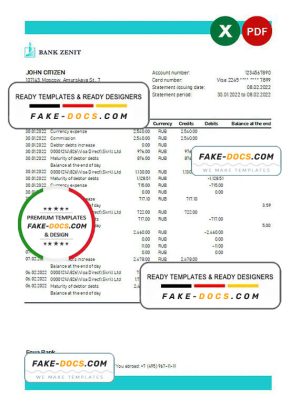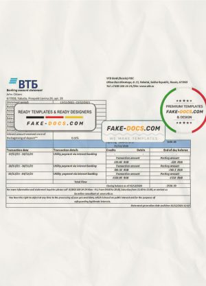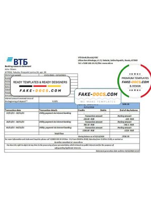 Russia VTB bank statement easy to fill template in .xls and .pdf file format