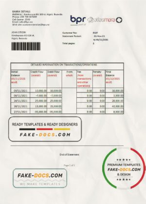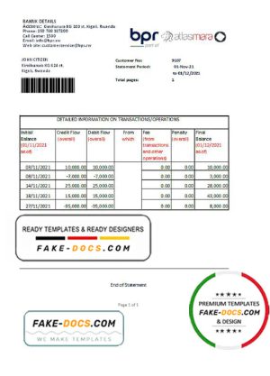 Rwanda BPR bank statement easy to fill template in Excel and PDF format