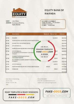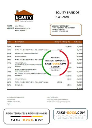 Rwanda Equity Bank statement easy to fill template in .xls and .pdf file format