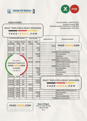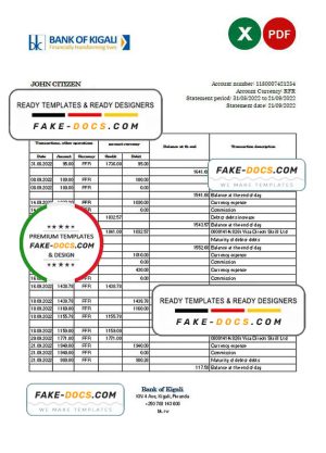 Rwanda Bank of Kigali bank statement, Excel and PDF template