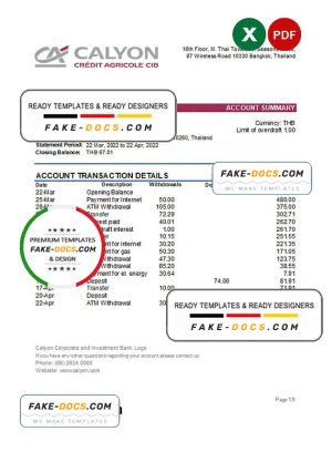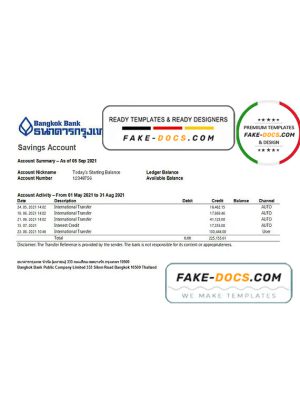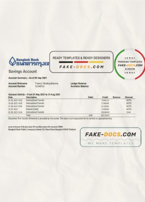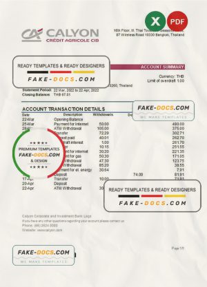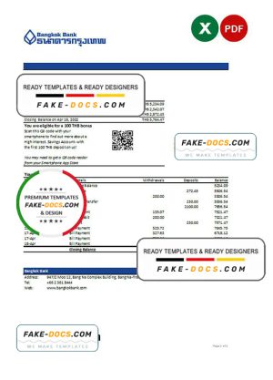 Thailand Bangkok bank statement easy to fill template in Excel and PDF format