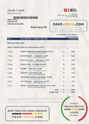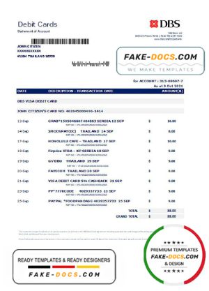 Thailand DBS bank statement easy to fill template in .xls and .pdf file format