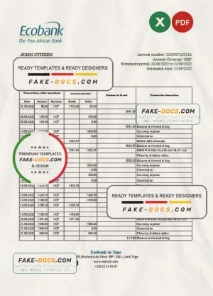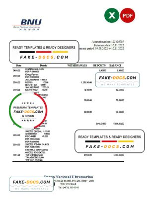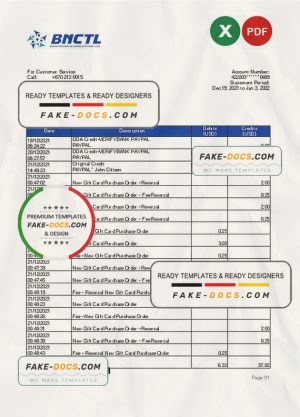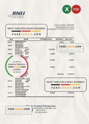 Timor-Leste BNCTL bank statement, Excel and PDF template
